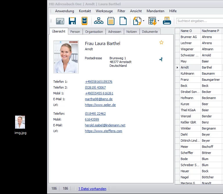 In der neuen Version vom MD Adressbuch One können Profilbilder per Drag and Drop dem Kontakt zugeordnet werden. Das funktioniert mit JPG- und PNG-Dateien. Die Datei wird dann automatisch im Dokumentenordner des Kontakts als profile.png bzw. als profile.jpg abgelegt.
